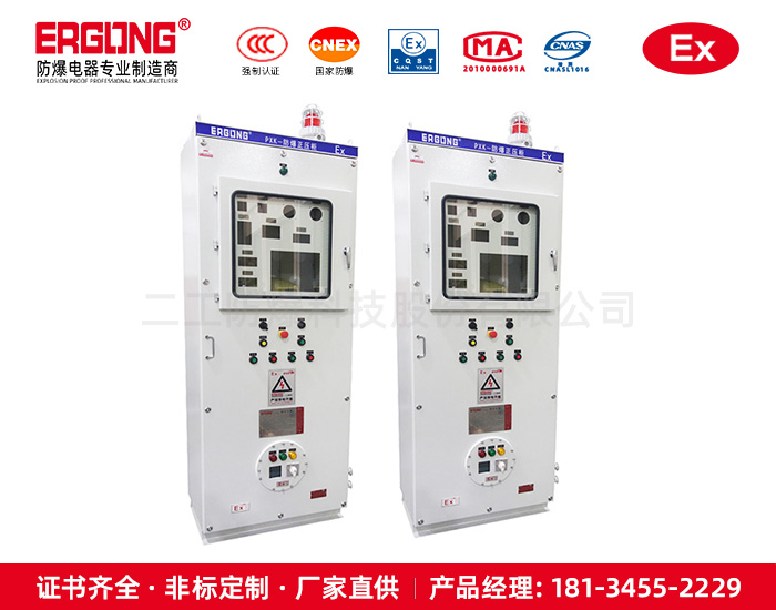 防爆正压柜采用介质隔离点燃源的防爆措施。即:把用户所用的电器元件安装在一个充满正压洁净气体的柜体内,使外部环境中易燃易爆的混合性气体无法接触到电器元件在正常工作时所产生的电火花或危险温度,从而达到电器防爆的目的。