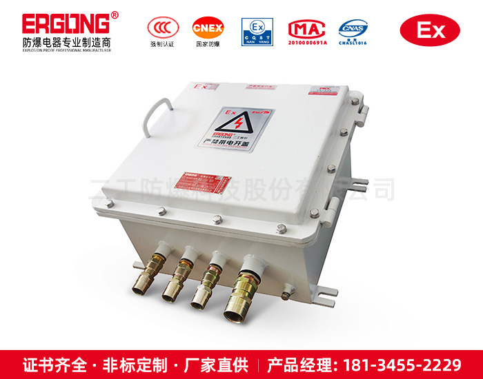 ● ⅡB类主体外壳采用隔爆型结构,内部元件可安装防爆元件或普通低压元件如继电器、温控仪或各种功能模块;