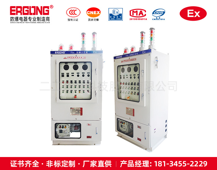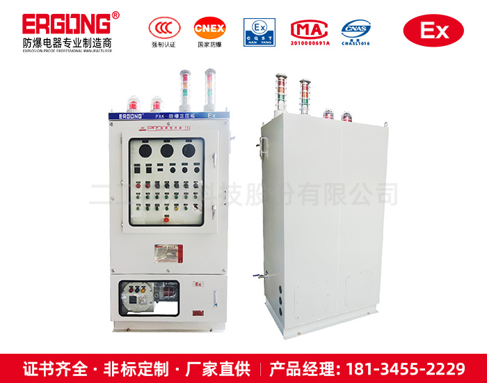 3. 防爆正压柜箱式产品采用优质钢板或不锈钢焊接结构,主、副盘为上下结构,挂式安装,下进线、前门操作和检修。