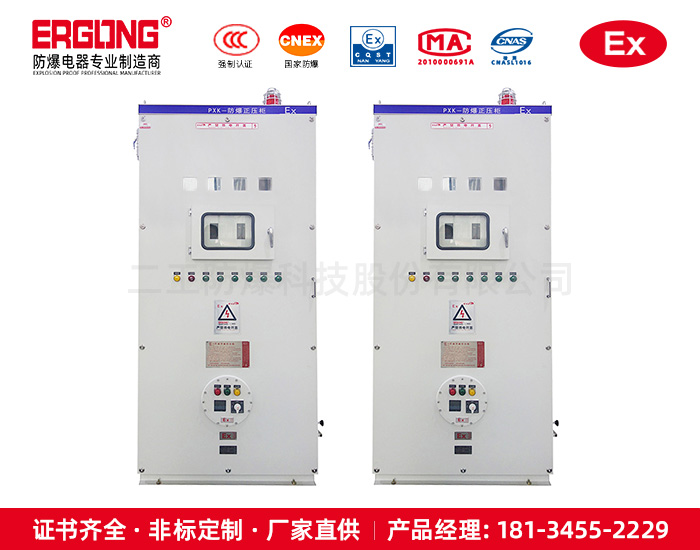 2.正压型防爆配电柜属于正压通风型的,当柜内气压大于500PA时机械式自动卸压阀自动卸压,箱内的热量会随着气体排出去,通风散热好,当低于100PA时,声光报警灯报警,当低于50PA时,自动断电。