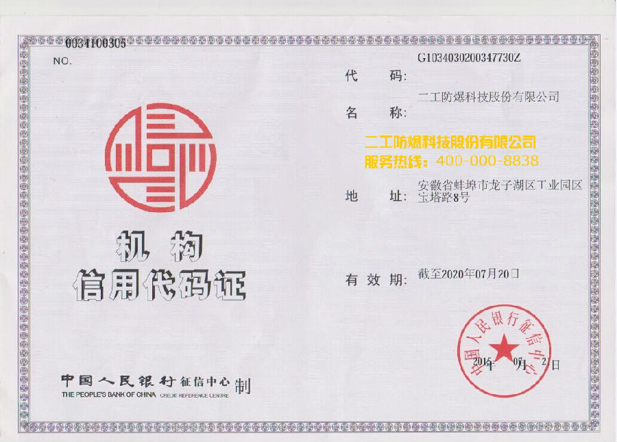 机构信用代码证