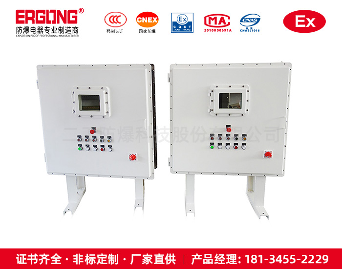 1.防爆配电箱外壳采用ZL102铝合金压铸或钢板焊接成型,表面高压静电喷塑,配不锈钢外露紧固件,产品外形美观。 2.防爆配电箱设计精良,安全易用,我公司免费提供一年保 3.箱体图纸可由贵公司提供,或由我公司代为制作。 4.防爆照明(动力)配电箱采用复合型,模块结构,各回路可根据需要自由组装,一般开关箱采用隔爆型结构,母线箱及出线箱采用增安型结构。 5.内装元件可根据用户要求安装高分断路器或塑壳式断路器。如DZ47、C65、CM1等。 6.可根据客户要求特制,如加装电涌保护器、电流表、电压表等,外可配挂锁金属手柄。 7.适用于照明和动力线路,具有分断、过载、失压保护和短路自动切断功能钢管或电缆布线均可。 8.符合GB3836-2000,IEC60079标准要求。