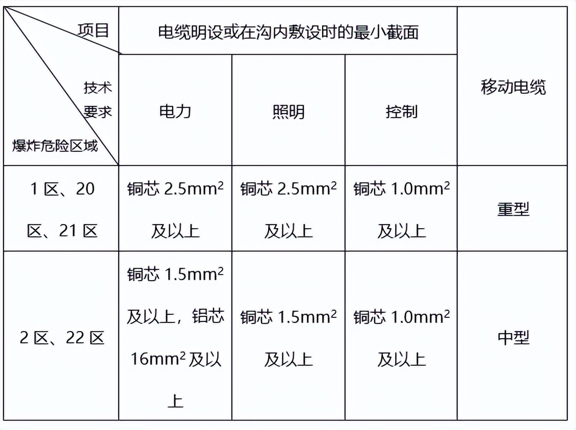 具体区域使用电缆的要求?