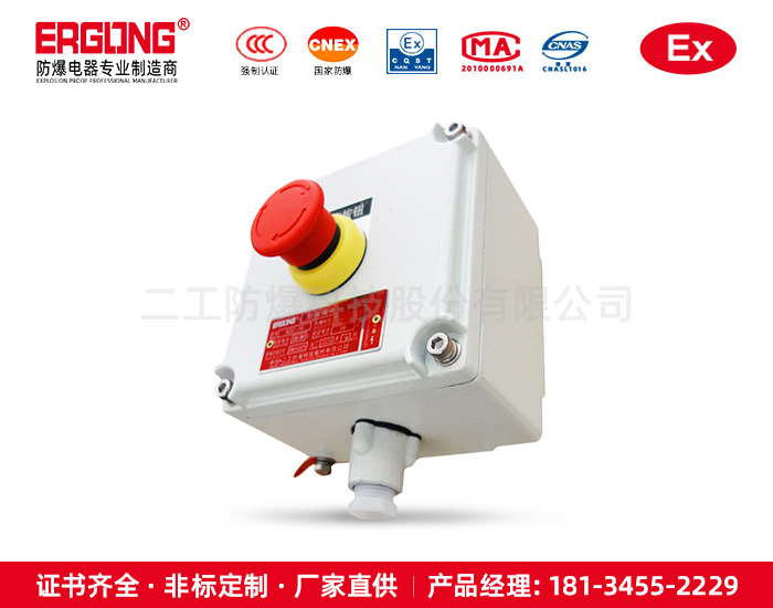 2.控制箱应贮存在空气流通,空气相对湿度不大于90%,温度不高现场防爆按钮箱,现场防爆按钮柜,立式防爆按钮箱于40℃,不低于-25℃的仓库中。
