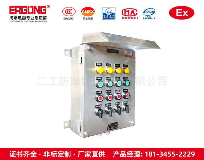 2.控制箱应贮存在空气流通,空气相对湿度不大于90%,温度不高现场防爆按钮箱,现场防爆按钮柜,立式防爆按钮箱于40℃,不低于-25℃的仓库中。