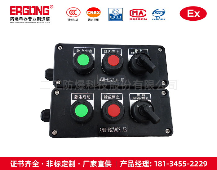 2.控制箱应贮存在空气流通,空气相对湿度不大于90%,温度不高现场防爆按钮箱,现场防爆按钮柜,立式防爆按钮箱于40℃,不低于-25℃的仓库中。