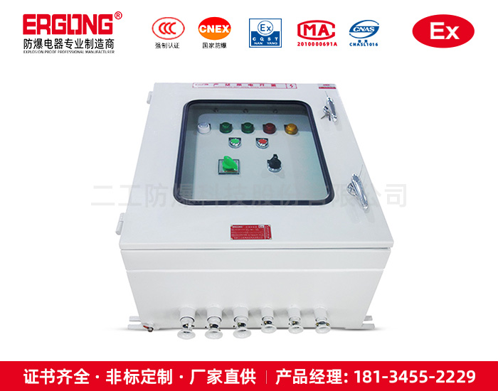 防爆配电箱是我公司的主打产品,我公司生产的防爆配电箱是根据客户要求订做的非标箱,按照客户提供的图纸或者元器件清单设计防爆配电箱的外形及尺寸,客户还可以要求防爆配电箱的材质,如铝合金防爆配电箱,Q235钢板焊接的防爆配电箱,还有不锈钢材质的防爆配电箱,防爆配电箱可以按照实际情况设计成壁挂式防爆配电箱和立式防爆配电箱。我们生产的防爆电器产品已被广泛应用于全国各地石油采炼、储存、化工、医药、纺织、印染、军工及军事设施等企业,欢迎您莅临公司参观指导!