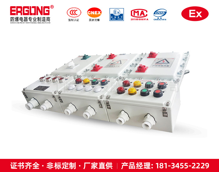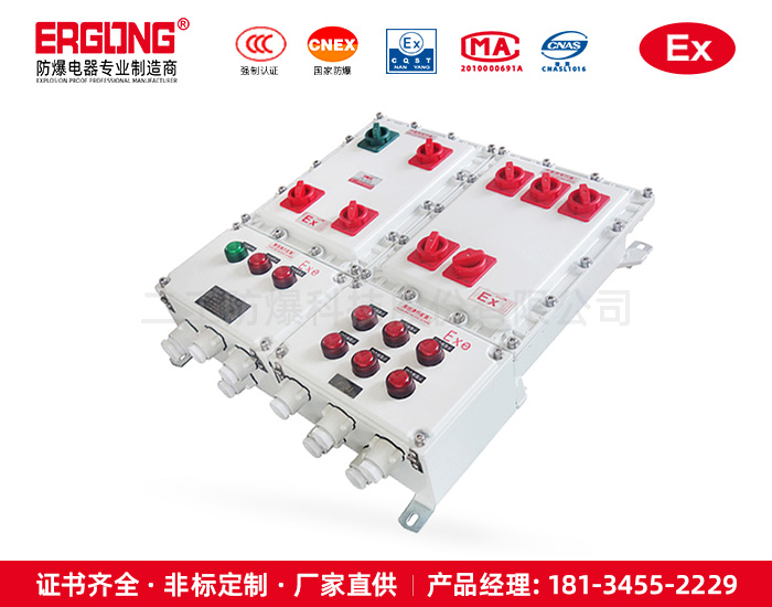4. 内装高分断小型漏电断路器或塑壳式漏电断路器,通过操作防爆客体外的手柄而实现分合;