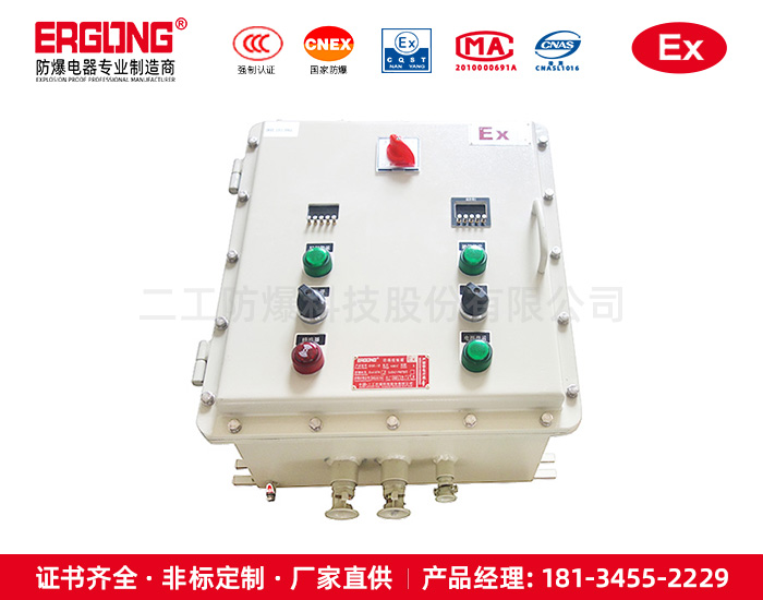 1.防爆配电箱外壳采用ZL102铝合金压铸或钢板焊接成型,表面高压静电喷塑,配不锈钢外露紧固件,产品外形美观。   2.防爆配电箱设计精良,安全易用,我公司免费提供一年保   3.箱体图纸可由贵公司提供,或由我公司代为制作。   4.防爆照明(动力)配电箱采用复合型,模块结构,各回路可根据需要自由组装,一般开关箱采用隔爆型结构,母线箱及出线箱采用增安型结构。   5.内装元件可根据用户要求安装高分断路器或塑壳式断路器。如DZ47C65CM1等。   6.可根据客户要求特制,如加装电涌保护器、电流表、电压表等,外可配挂锁金属手柄。   7.适用于照明和动力线路,具有分断、过载、失压保护和短路自动切断功能钢管或电缆布线均可。   8.符合GB3836-2000IEC60079标准要求。