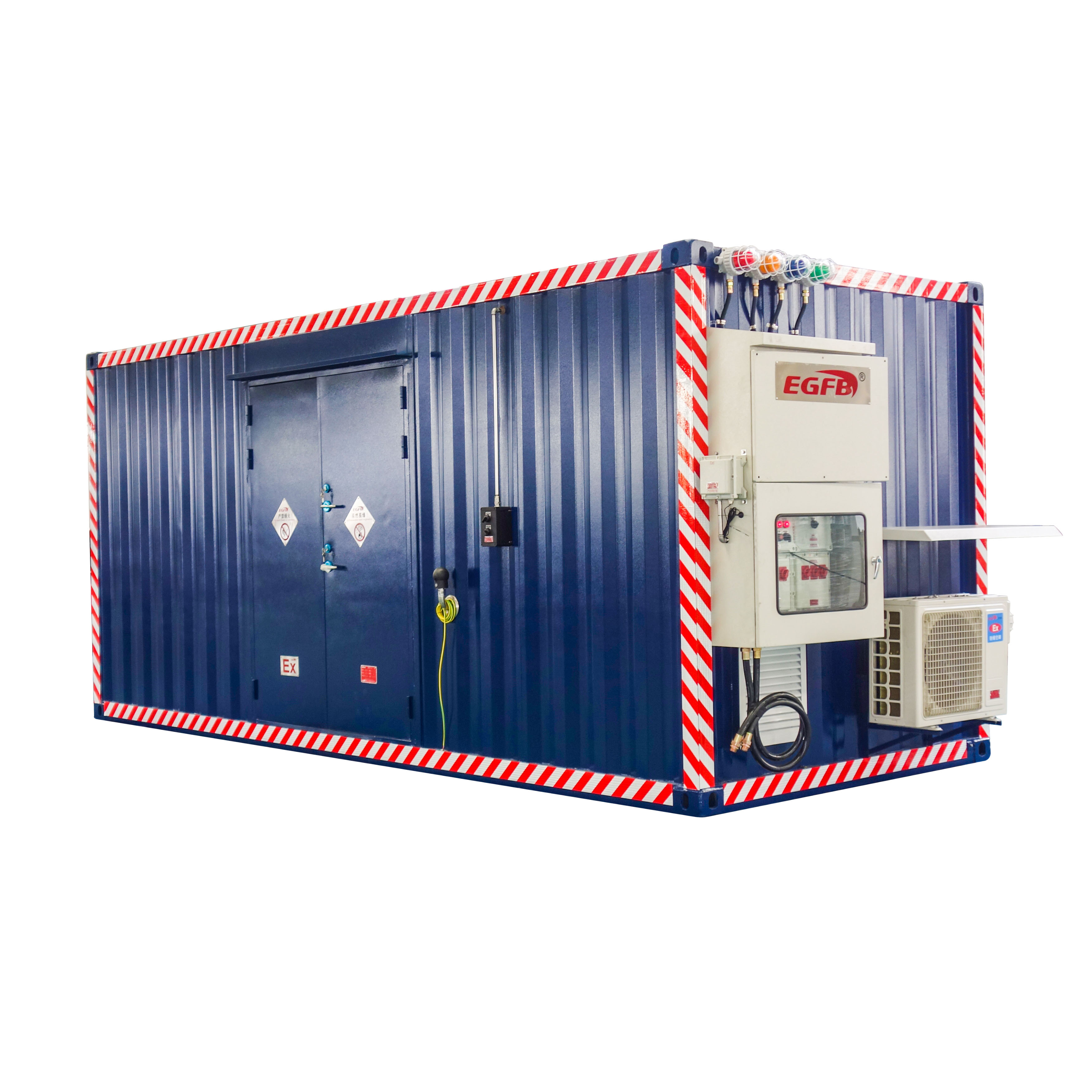 防爆分析小屋温控系统的作用1、满足防爆安全要求在易燃易爆环境中,温度控制也是防爆安全的重要环节。过高的温度可能引发小屋内的易燃易爆气体燃烧或爆炸。温控系统可以防止因温度失控导致的潜在爆炸危险。例如:当小屋周围环境温度较高或者小屋内设备运行产生热量时,温控系统能够及时启动制冷设备,降低温度,确保小屋内的温度始终处于安全范围,从而保证防爆分析小屋在危险环境中的安全性。2、确保设备正常运行防爆分析小屋内通常放置各种精密的分析仪器和电气设备,如气相色谱仪、质谱仪、分析仪控制系统等。这些设备往往有严格的温度要求。例如:气相色谱仪的柱温箱温度需要精确控制,一般要求温度波动在 ±0.1 - ±1℃之间。温控系统能够将小屋内的温度维持在设备所需要的适宜范围内,避免温度过高或过低对设备性能产生影响。温度过高可能导致电子元件性能下降、仪器基线漂移、测量精度降低等问题;温度过低则可能使某些溶液冻结、仪器启动困难或出现故障。3、保障分析结果准确性在分析检测工作中,准确的分析结果至关重要。防爆分析小屋温控系统通过保持稳定的温度环境,有助于提高分析测试的重复性和准确性。以化学分析中的分光光度法为例,温度会影响物质的吸收光谱。如果温度不稳定,同一物质在不同温度下的吸收峰位置和强度可能会发生变化,从而导致测量结果出现偏差。而温控系统能将温度控制在合适的范围,使分光光度计等分析仪器在稳定的温度下工作,确保分析人员得到准确可靠的测量数据。4、提高设备使用寿命温度的剧烈变化和长期超