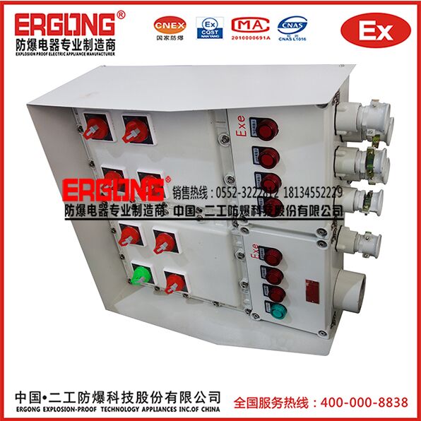 11、防爆配电箱厂家关于配电箱外观的条件,配电箱的机械要求。配电箱箱体选用的钢板厚度不小于1.5mm,配电柜柜体选用不少于2.0mm厚度的冷轧钢板制成,钢板箱门、钢板盘面厚度不小于2.0mm,背板厚度不小于3.0mm,导轨必须结实,配电柜的结构应完整坚固。同时在非落地式配电箱背面的左下角和右上角焊出两个承耳,承耳采用40X4的扁钢,扁钢长度为10CM。