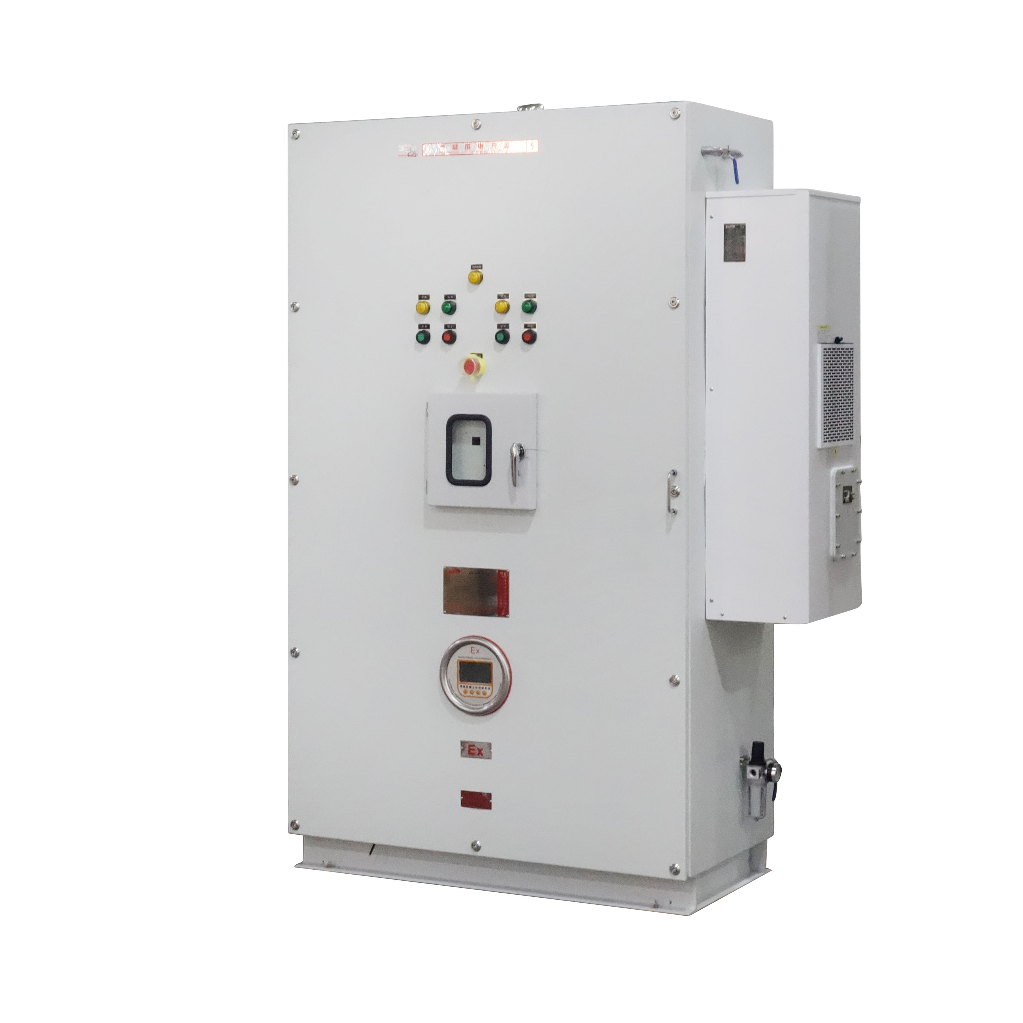 2.控制系统:控制系统是防爆正压柜的核心部分,负责监测和控制正压柜内部的气体压力。该系统通常由PLC(可编程逻辑控制器)或微处理器实现,通过传感器获取压力信号,并根据预设的逻辑进行判断和控制。控制系统能够实时监控压缩机的运行状态,控制正压柜的进气和出气,以及监测柜内压力等关键参数,确保正压环境的稳定。