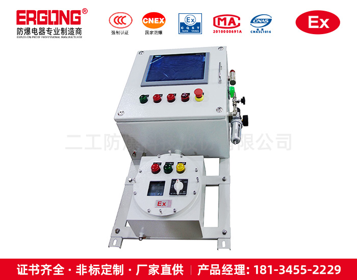 防爆正压柜箱式产品采用优质钢板或不锈钢焊接结构,主、副盘为上下结构,挂式安装,下进线、前门操作和检修。