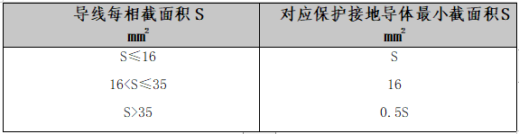 表1 保护导线的最小截面积