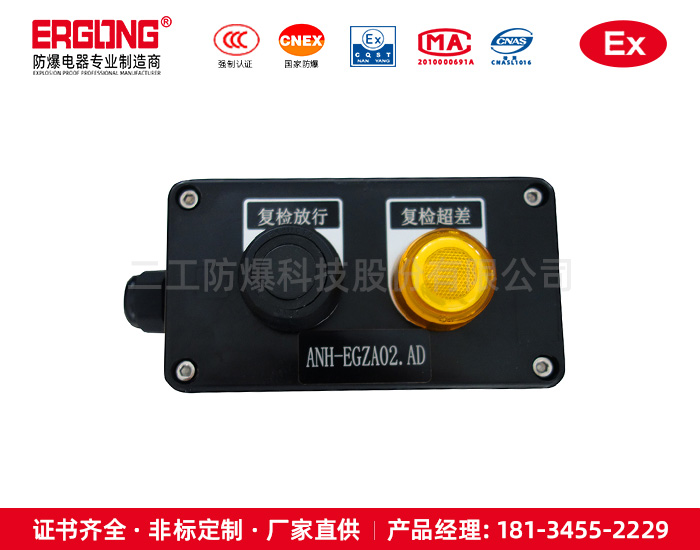 1、 增安型外壳,内装按钮、指示灯等防爆元件;
