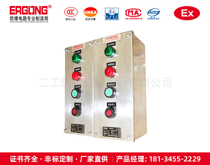 用途:本产品适用于1区、2区危险场所,作为交流50Hz,电压至220/380V动力设备起动、停止控制使用。