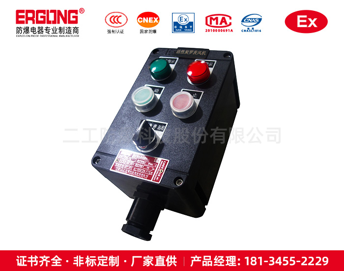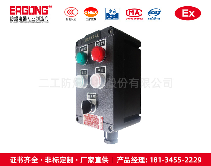 2.控制箱应贮存在空气流通,空气相对湿度不大于90%,温度不高现场防爆按钮箱,现场防爆按钮柜,立式防爆按钮箱于40℃,不低于-25℃的仓库中。