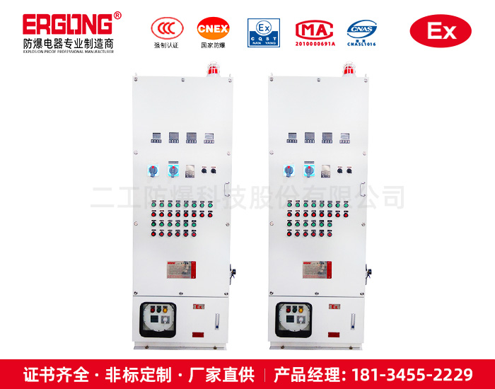 2.防爆动力(电磁起动)配电箱采用复合型,模块结构,各回路可根据需要自由组装,一般开关箱采用隔爆型结构,母线箱出线箱采用增安型结构.