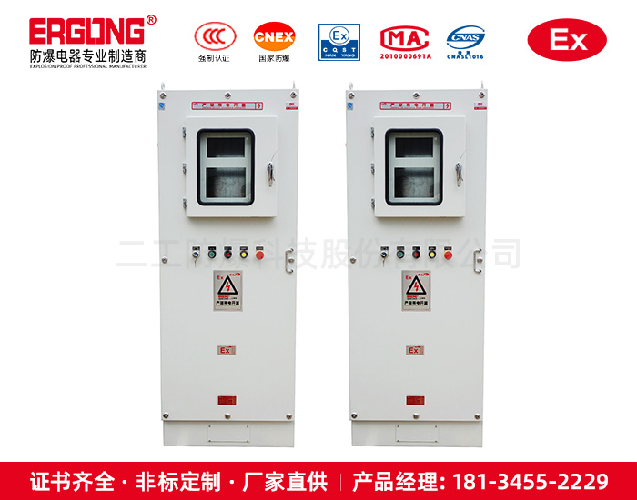 2. 本产品为“二工电气”改进型防爆产品,可根据用户要求安装各种普通的检测仪表、分析仪表、显示仪表、变压器、软启动器、变频器、PLC、各种按钮、开关、微电脑触摸屏以及普通电器元件,对用户需装电器元件完全不受限制;